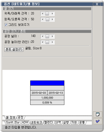³×Æ®¿öÅ© Â÷Æ®ÀÇ ¼¿ Å©±â ¹× ³×Æ®¿öÅ© °øÁ¤ÀÇ Å©±â, ÆùÆ® µîÀ» ¼³Á¤ÇÕ´Ï´Ù.