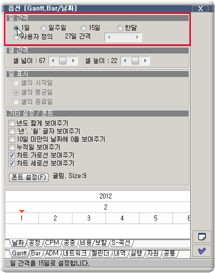ȤÀº °£Æ® Â÷Æ®¿¡¼ <Ctrl> + <+> ۸¦ °è¼Ó ´·¯ 1ÀÏ °£°ÝÀ¸·Î Á¶Á¤ÇÕ´Ï´Ù.