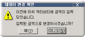 °øÁ¾±¸Á¶¸¦ ¸¸µé°í ¾×ƼºñƼ¿¡ °øÁ¤À» ¿©·¯°³ »ý¼ºÇÕ´Ï´Ù. ±× ´ÙÀ½¿¡ °øÁ¤ÀÇ ºÎ¸ð ¾×ƼºñƼ¿¡ ±Ý¾×À» ÀÔ·ÂÇϸé, ÇÏÀ§ ¾×ƼºñƼ¿¡ ÀϺ° ±Ý¾×ÀÌ µ¿ÀÏÇÏ°Ô ºÐÇҵǾî ÀԷµ˴ϴÙ. ¿¹Á¦¿¡¼´Â ¹ÌÀå°ø»çÀÇ 1Ãþ °ßÃâ°ú 2Ãþ °ßÃâ¿¡ ÀϺ° ºñ¿ëÀÌ Á¤È®ÇÏ°Ô ºÐÇҵǾî ÀԷµ˴ϴÙ. Áï, °øÁ¤ÀÇ ¹Ù·Î »óÀ§ ¾×ƼºñƼ¿¡¸¸ ºñ¿ëÀÌ ÀԷµȴٴ ¿¹¿Ü°¡ Çã¿ëµÇ´Â °ÍÀÔ´Ï´Ù. ![]() ![]() »óÀ§ °øÁ¤¿¡ ÀÔ·ÂÇÑ ºñ¿ëÀÌ ÇÏÀ§°øÁ¤¿¡ ºÐÇҵǾî ÀԷµ˴ϴÙ. ÇÏÁö¸¸, »ç¿ëÀÚ°¡ ÀÌ¹Ì ¾×ƼºñƼ¿¡ ºñ¿ëÀ» ÀÔ·ÂÇÑ °æ¿ì¿¡´Â »óÀ§ ¾×ƼºñƼ¿¡ ºñ¿ëÀ» ÀÔ·ÂÇÏ´Â ¼ø°£ °æ°í ¸Þ¼¼Áö°¡ ³ªÅ¸³ª°í, '¿¹'¸¦ Ŭ¸¯ÇÕ´Ï´Ù. ![]() ÀÌ·¯ÇÑ ¿¹¿Ü »óȲÀº ÃÖ»óÀ§ ³ëµå¿¡´Â Àû¿ëµÇÁö ¾Ê½À´Ï´Ù.