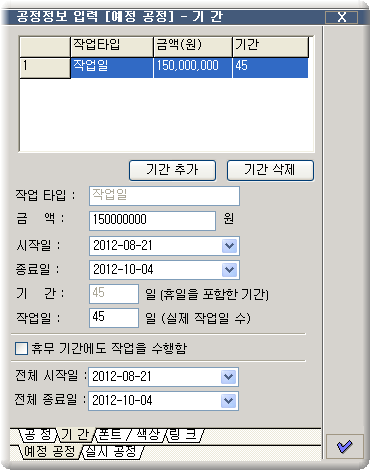 ÀÛ¾÷ÀÏ : °øÁ¤¿¡ ÇÊ¿äÇÑ ½ÇÁ¦ ³¯Â¥, ÀÛ¾÷Àϸ¸ÀÇ ÇÕÀÌ µË´Ï´Ù. (termÀ¸·Î ³ª´µ¾îÁ® ÀÖÀ»°æ¿ì ºñÀÛ¾÷ÀÏÀº Á¦¿Ü)
