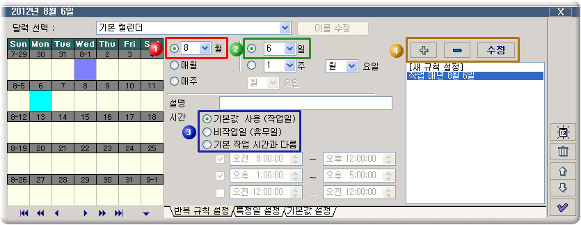 | 3.2 ¹öÀü¿¡¼ ±âÁ¸¿¡ ÆíÀÇ»ó »ç¿ëÇÏ¿´´ø 'ÈÞ¹«' ¶ó´Â ¿ë¾î°¡ ÀÛ¾÷ ͏°´õ(Work Calendar)·Î º¯°æµÇ¾ú½À´Ï´Ù. |