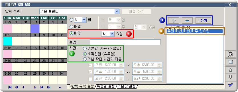 ÀÌÁ¦ ¿äÀÏÀ» 'ÀÏ¿äÀÏ'·Î ¼³Á¤ÇÏ°í ½Ã°£À» 'ºñÀÛ¾÷ÀÏ(ÈÞ¹«ÀÏ)' ·Î ¼³Á¤ÇÕ´Ï´Ù.